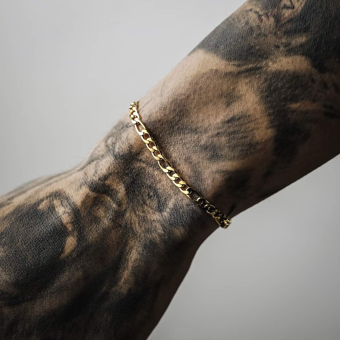 Includes: Gold Figaro Chain & Gold Wheat Chain Bracelet