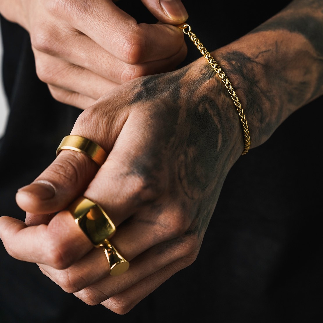 Some well-picked accessories can make all the difference when you are trying to upgrade your outfit, so don’t overlook our polished 24kt Gold Plated Figaro Chain Bracelet and 24kt Gold Wheat Chain Bracelet which features our hand-crafted & premium Figaro chain and Wheat chain bracelet, perfect when worn on it's own or as a set with our other 24kt gold pieces such as our Figaro Chain Necklace and Gold Rings. Our Figaro and Wheat chain which originates from Italian chain makers, is sure to make a statement.