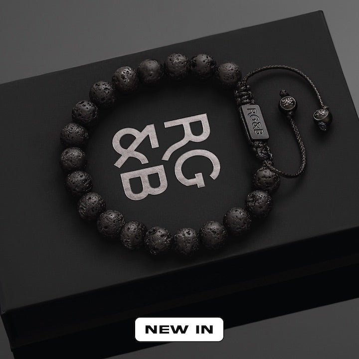 It's time to step things up with our real Lava Stone Beaded Bracelet. Featuring natural lava stone beads, our signature premium waxed cord and brushed black hardware, engraved with the iconic RG&B logo. This bracelet is the perfect all rounder when worn on it's on or stacked with other pieces of jewelry.