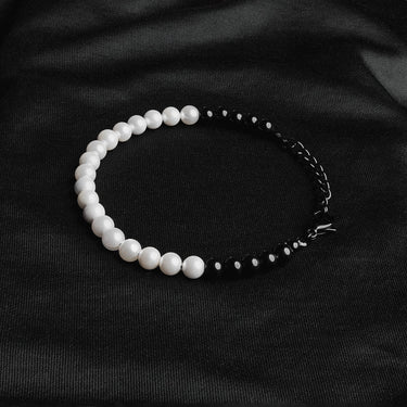 Our Pearl & Black Bead Bracelet has been crafted using both polished white pearls and black beads.