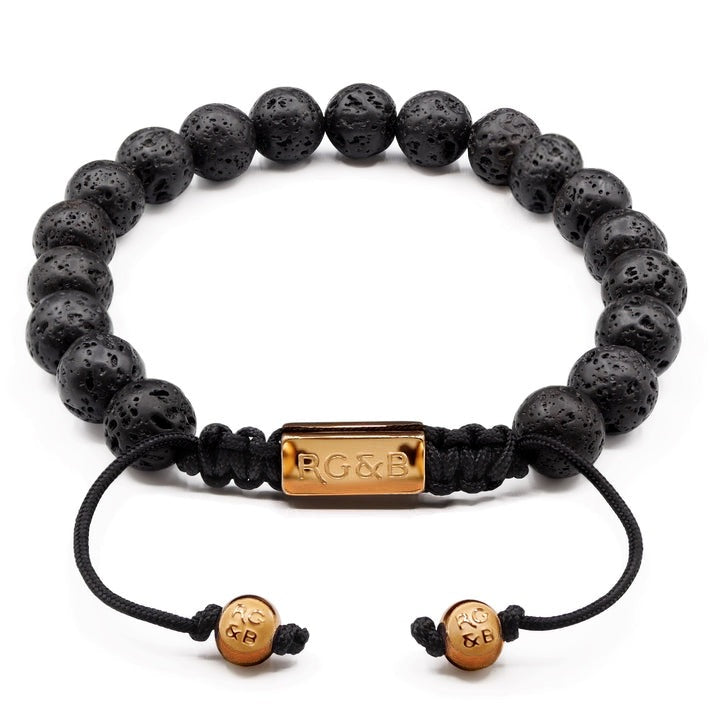 It's time to step things up with our real Lava Stone Beaded Bracelet. Featuring natural lava stone beads, our signature premium waxed cord and gold plated hardware, engraved with the iconic RG&B logo. This bracelet is the perfect all rounder when worn on it's on or stacked with other pieces of jewelry.