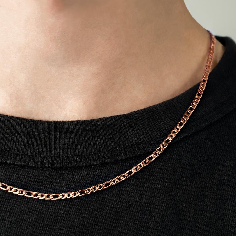 Our Rose Gold Figaro Chain features our premium rose gold figaro chain and signature polished rose gold plate, engraved with RG&B.