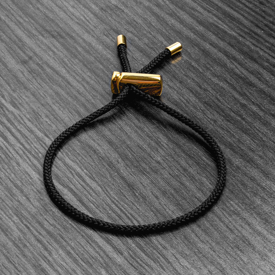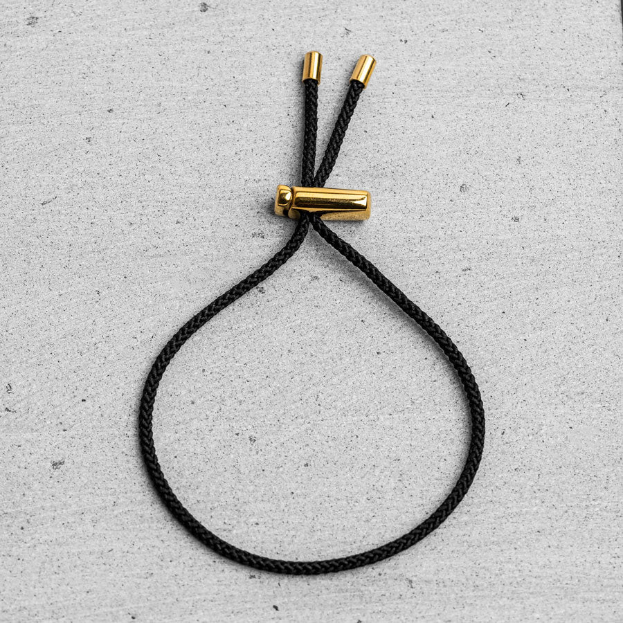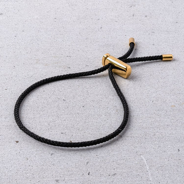 Our Black & Gold Drawstring Bracelet has been crafted using the finest braided maritime grade nylon rope held together and adjusted by a premium drawstring clasp, plated in 24kt gold. This piece is the perfect touch of black & gold that is great when worn on it's own or when stacked with other black or gold jewelry.