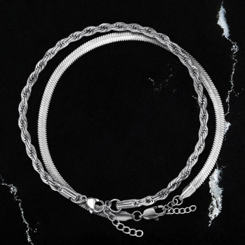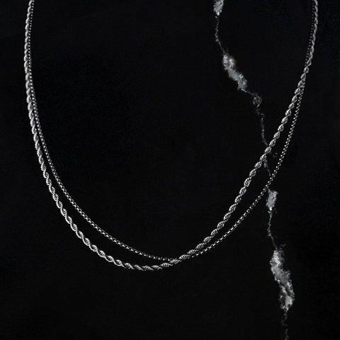 Rope & Box Chain Stack (Silver) - 2 Pack