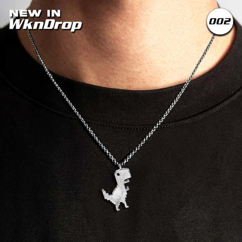 Vintage Dinosaur Pendant Necklace - Silver