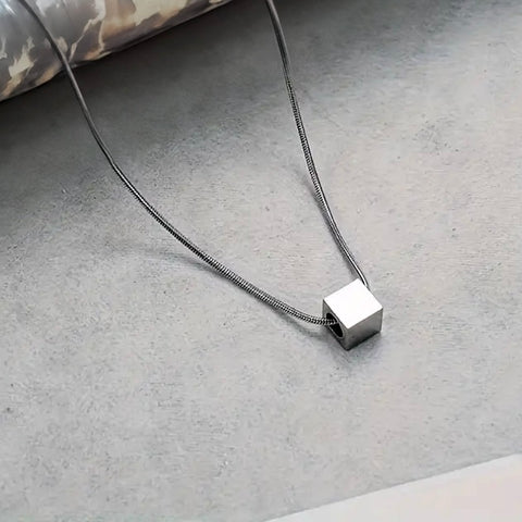 Minimal Silver Cube Pendant Necklace