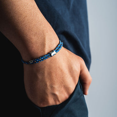 Our Blue & Silver Nylon Bracelet has been crafted using the finest braided maritime grade nylon rope held together and adjusted by a premium clasp, in polished silver. This piece is the perfect touch of silver & blue that is perfect when worn on it's own or when stacked with other silver jewelry or blue/ navy clothing.