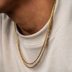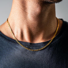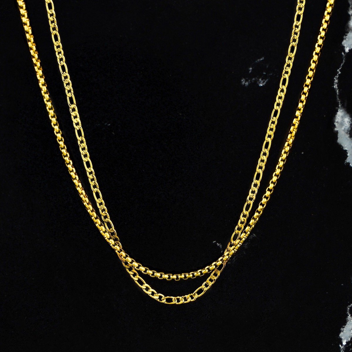 Built to last — constructed and crafted from our premium 24kt Gold Plating built to last using industry leading materials, plated with the highest quality 24kt gold available that has been individually applied by skillful artisans and guaranteed to last for years if treated properly. Featuring our signature gold Figaro Chain and our all time best seller gold Box Chain which is going to quickly become your favorite piece with how well it compliments your style and being a conversation starter.