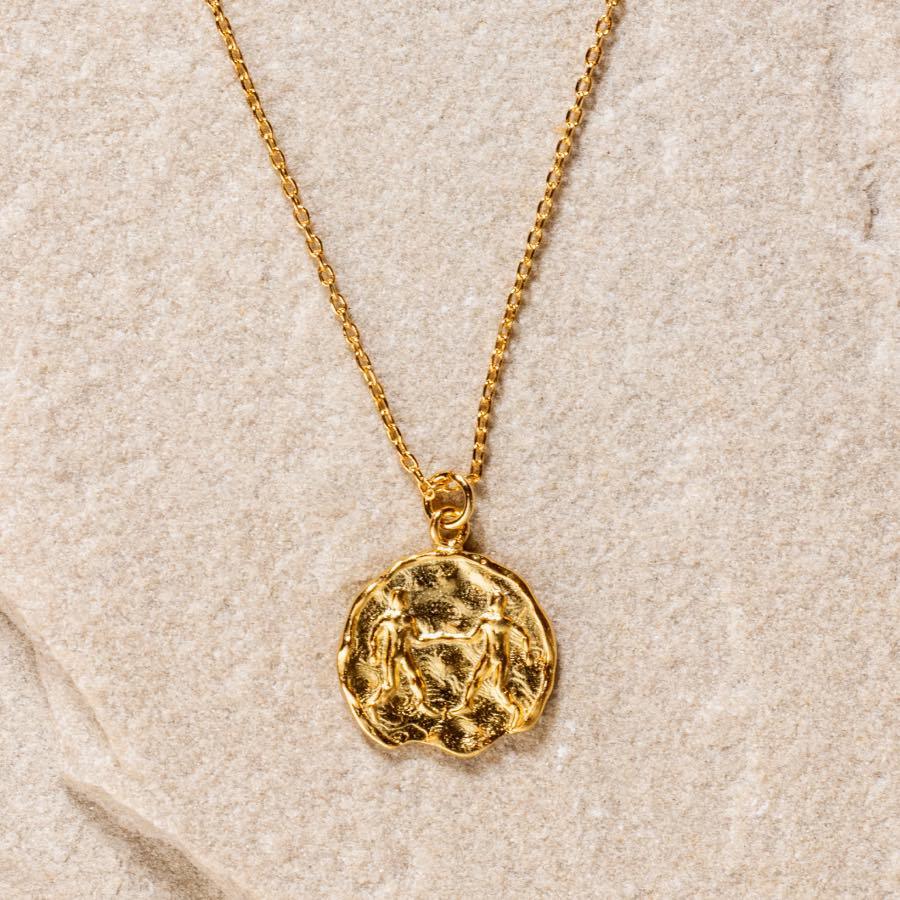 Fine chain necklace featuring a delicate gemini star sign pendant.
